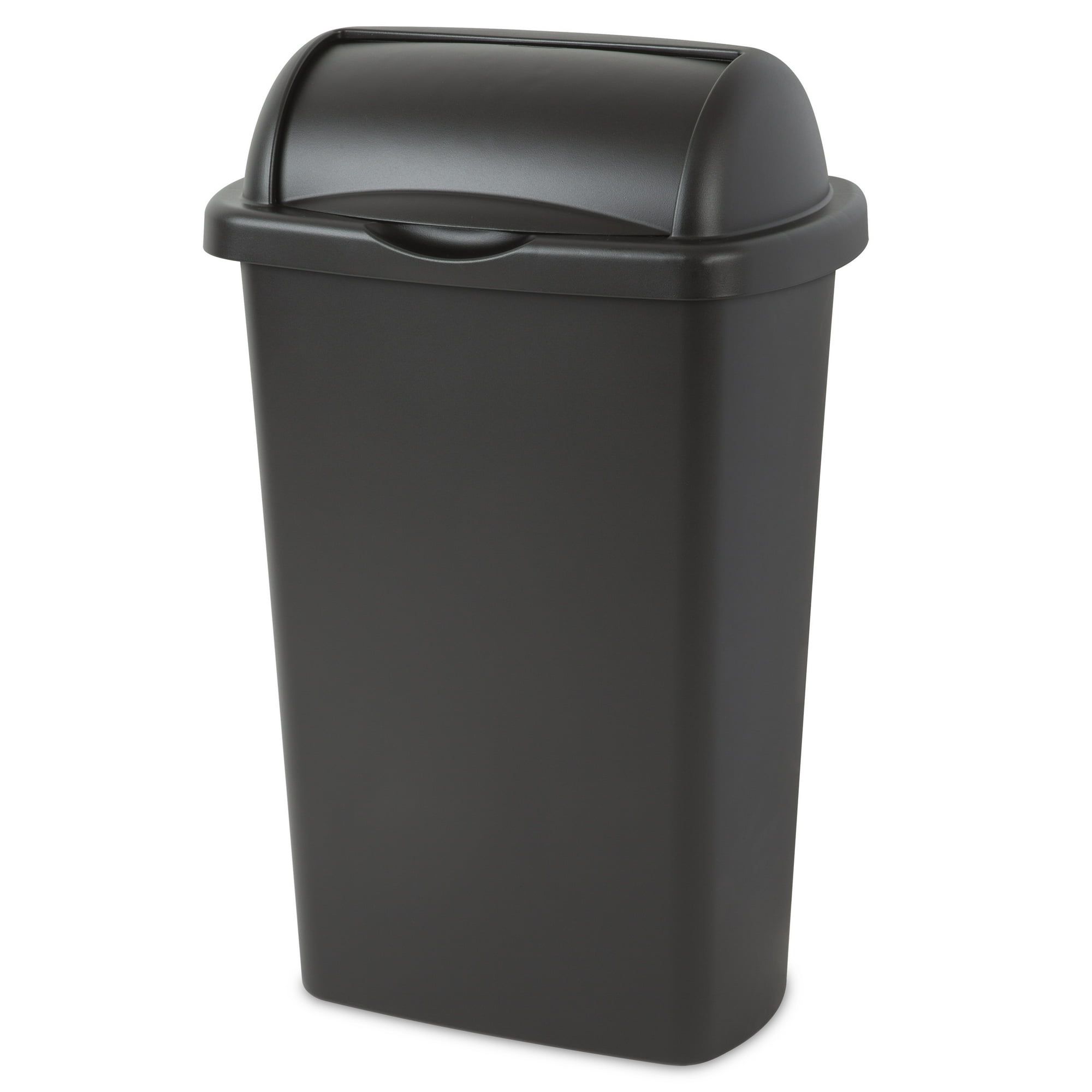 Home > 13 Gallon Roll Top Wastebasket, Large Trash Can with Easy Open Lift Lid for Kitchen, Black