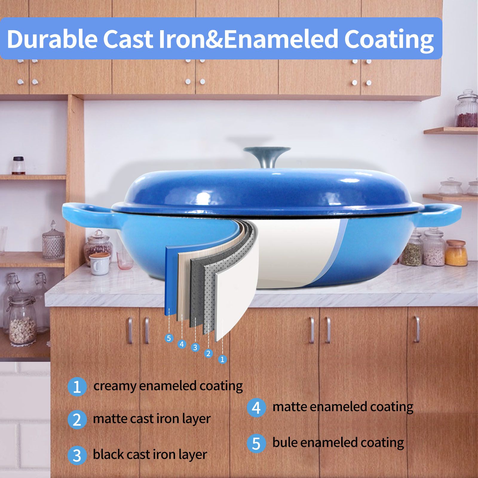 Key FeaturesMaterial: Enameled cast iron with a non-stick surface.Capacity: 3.8 quart, offering ample cooking space.Functions: Marinating, cooking, baking, and serving.Versatility: Suitable for various cooking methods, making it a versatile kitchen tool.Safe and Efficient Cooking
