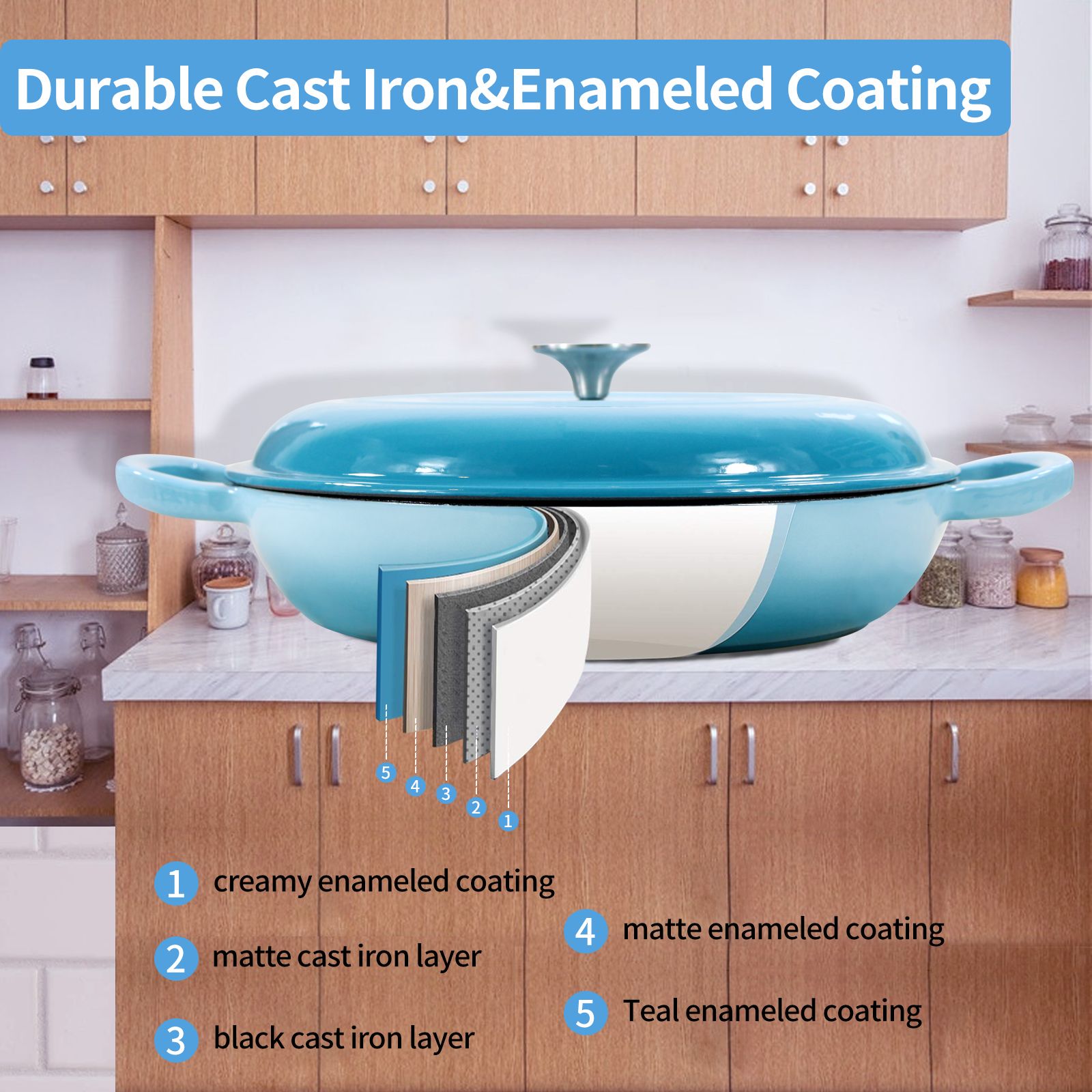 Key FeaturesMaterial: Enameled cast iron with a non-stick surface.Capacity: 3.8 quart, offering ample cooking space.Functions: Marinating, cooking, baking, and serving.Versatility: Suitable for various cooking methods, making it a versatile kitchen tool.Safe and Efficient Cooking