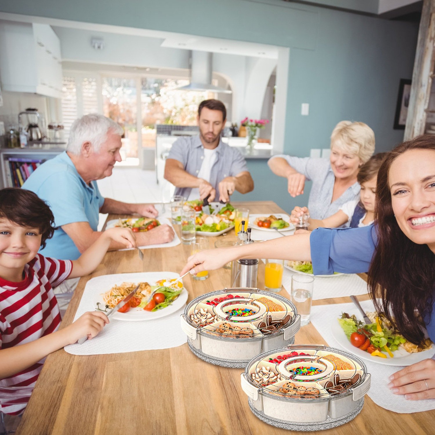 Home > 2Pcs Divided Serving Tray with Lid and Handle 360° Rotatable Snack Box Container with 6 Dividers Clear Portable Snack Platters for Fruit Candy Nut Sna