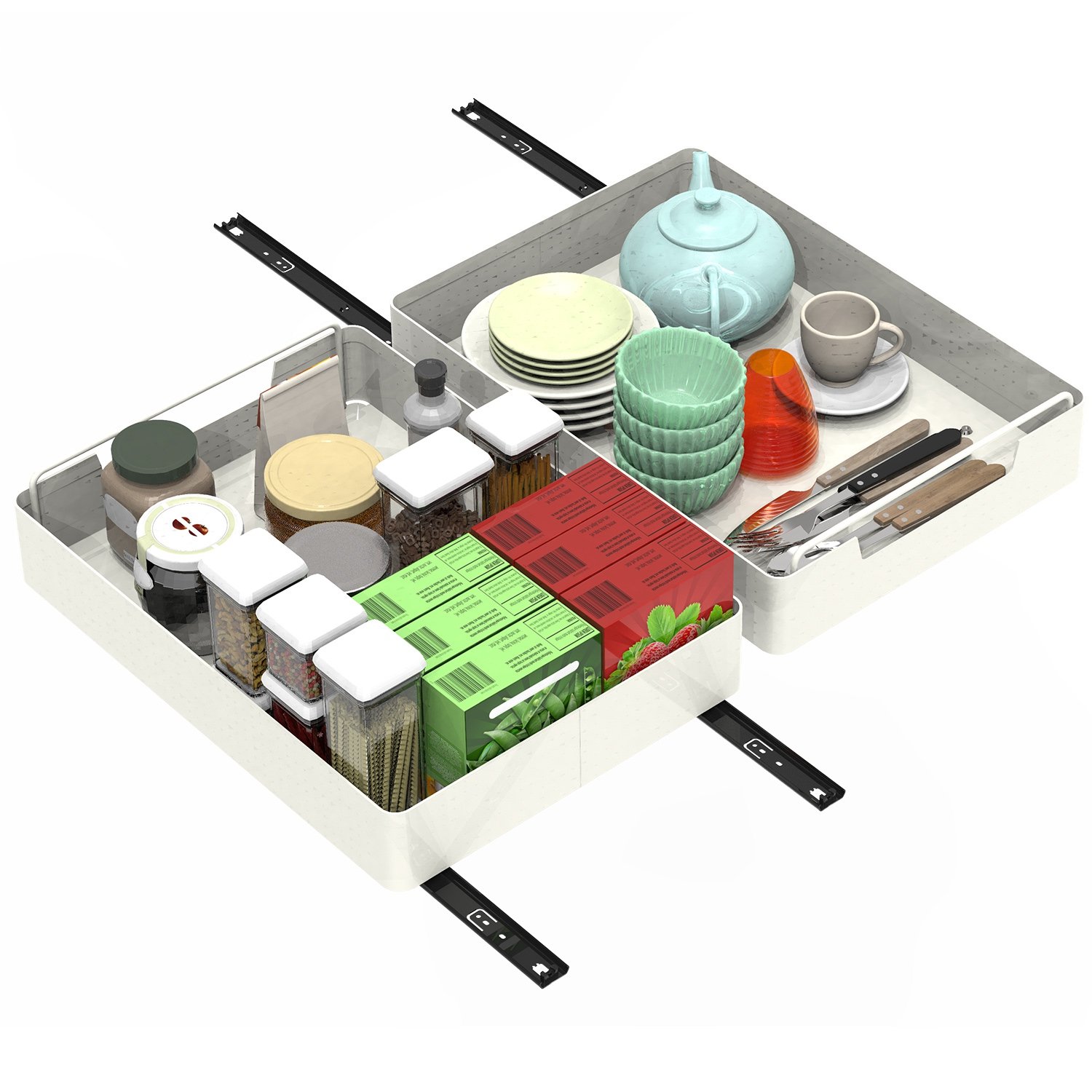 Home > 2Pcs Pull Out Cabinet Organizers Sliding Shelf Spice Rack Carbon Steel Roll Out Drawers Fixed with Adhesive Nano Film with Handle 55LBS Max Load
