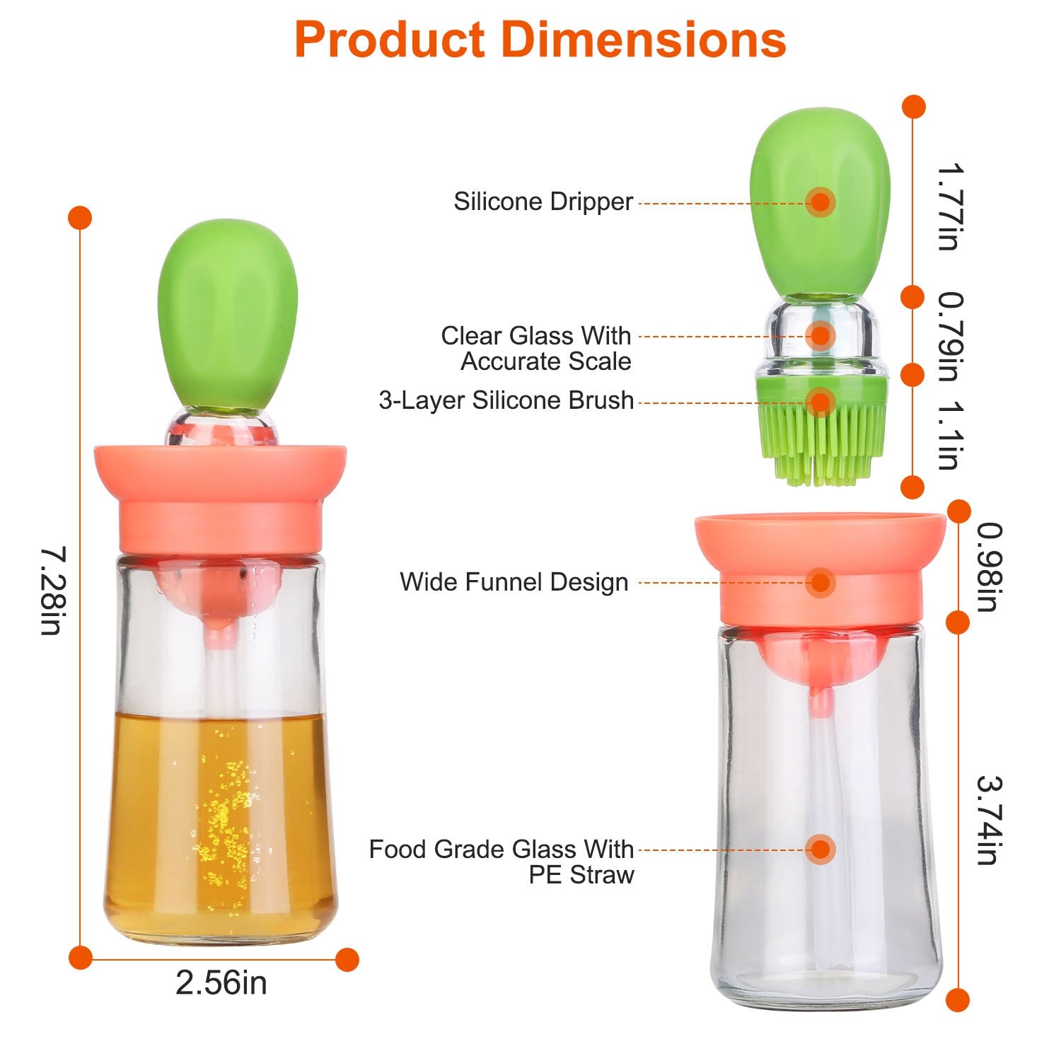 Home > Oil Dispenser Bottle 2 In 1 Cooking Glass Olive Oil Dispenser Silicone Dropper with Silicone Brush Dropper Measuring Container for Kitchen Baking BBQ