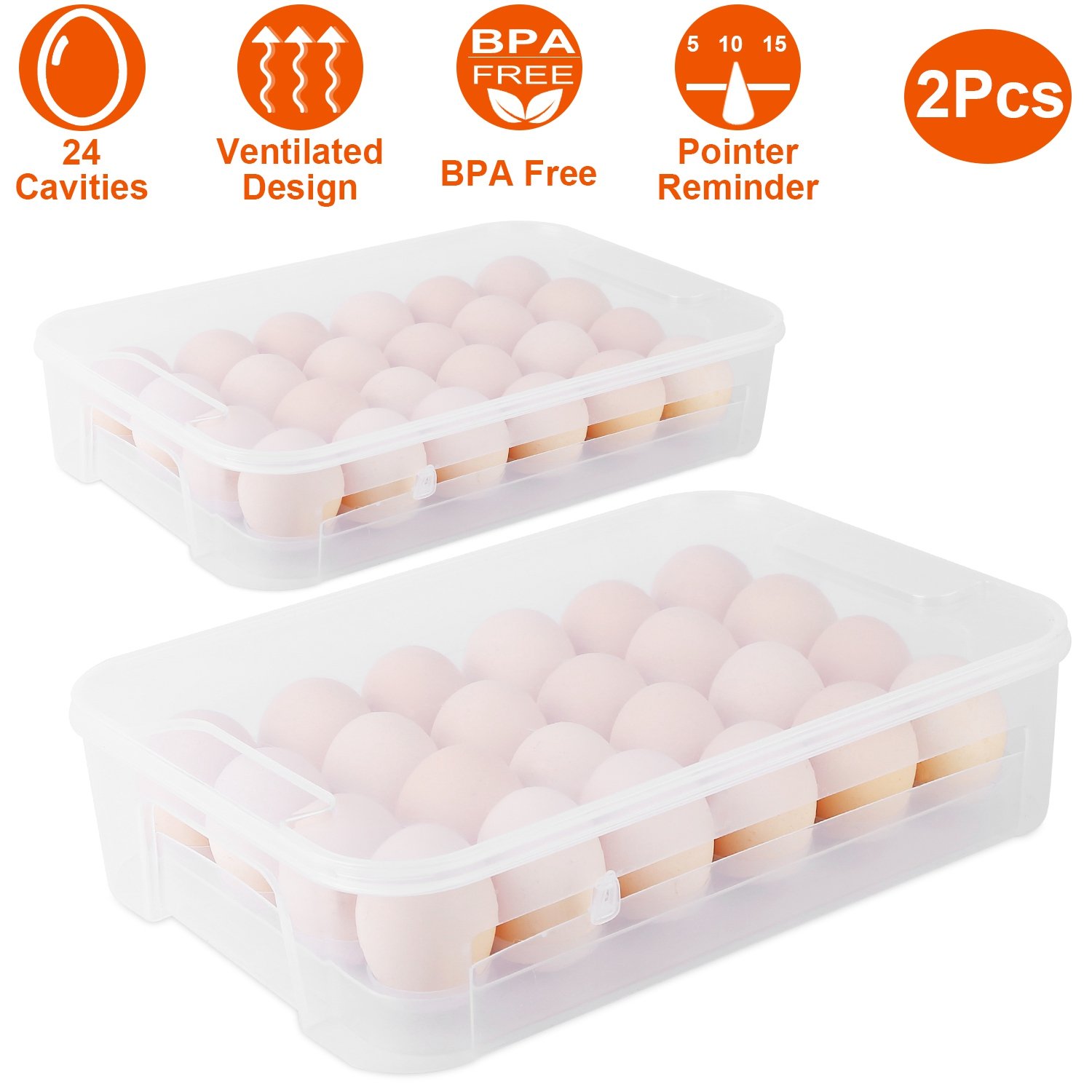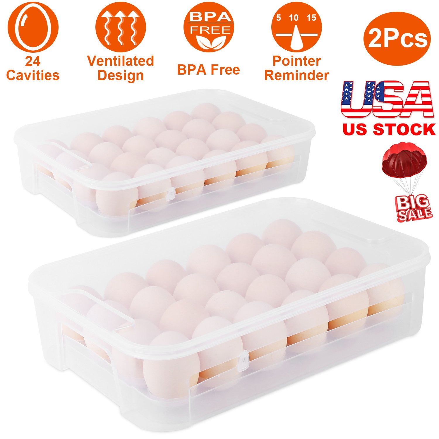 2Pcs Plastic Egg Holder Stackable Egg Storage Box Egg Rack for Refrigerator 24 Cavity Per Container