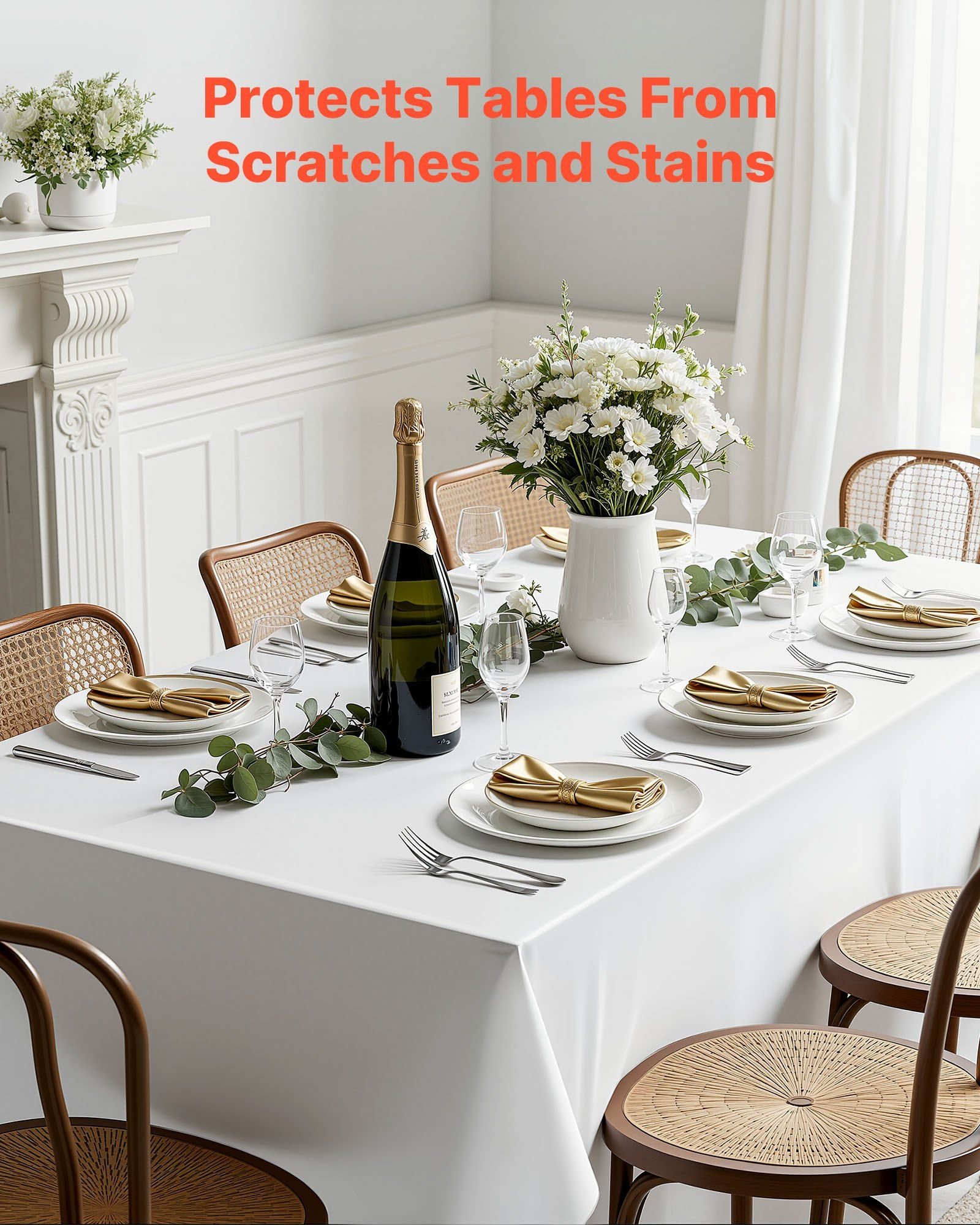 3.Multiple Uses: Whether for family gatherings during holidays or upscale dinners with friends, these table covers will always make your dining table stand out. Ideal for parties, dining tables, birthdays, weddings, anniversaries, picnics, barbecues, Christmas, catering, or any other festive decoration