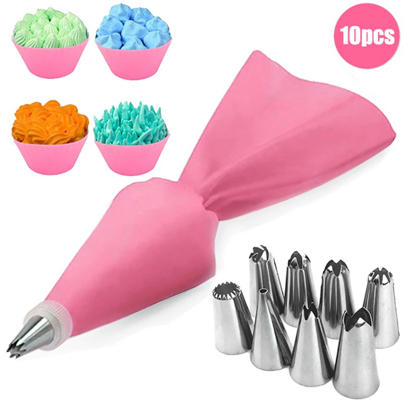 Home > 8/10/18PCS Silicone Pastry Bag Tips Kitchen Cake Icing Piping Cream Cake Decorating Tools Reusable Pastry Bags Nozzle Set