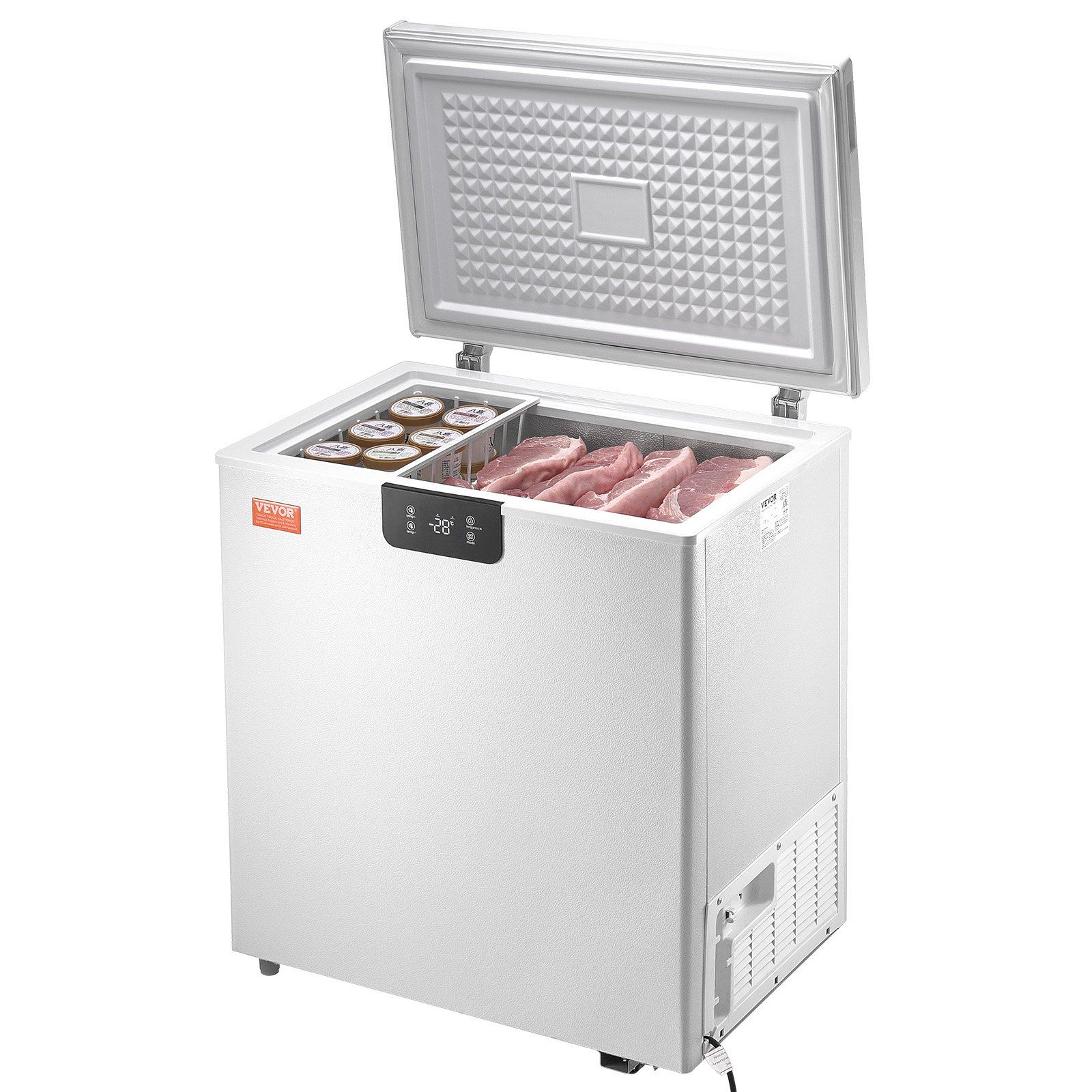 With 5 cu.ft capacity and 2 removable baskets, VEVOR chest freezer is perfect for storing everything from turkeys to pizzas and smaller items, ensuring ingredients stay fresh and cold for longer. Compact and space-saving, it offers extra storage for frozen goods while occupying minimal space.